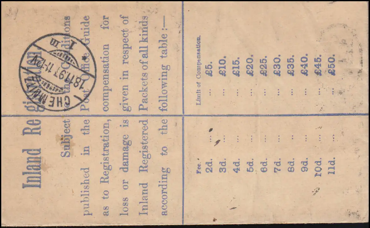 Royaume-Uni Enveloppe d'inscription 18 Aa Supplémentaire Fr. BRAFDORD-YORK 16.11.1897