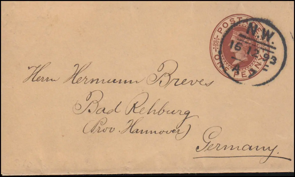 Royaume-Uni Streifband S 10 Viktoria London N.W. 16.12.92 A7 vers Bad Rehburg