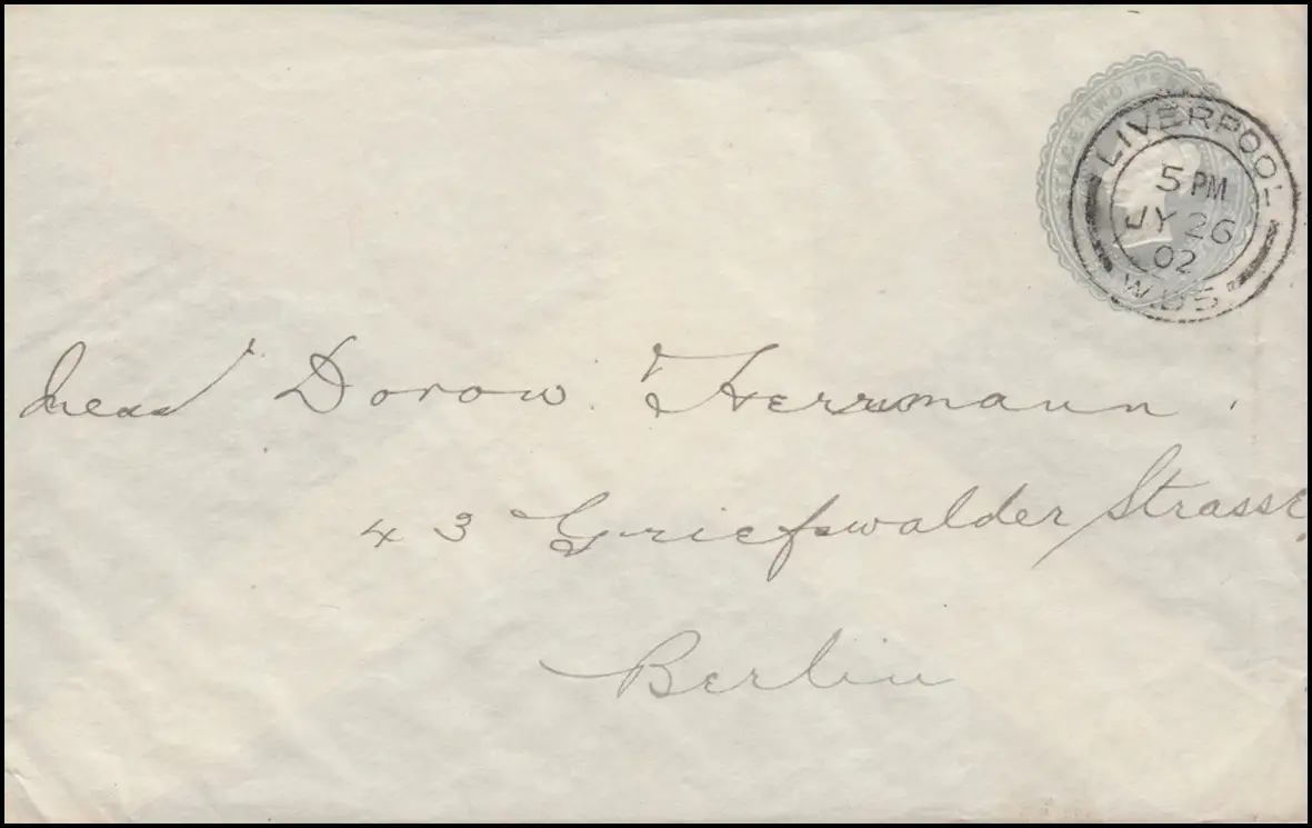 Royaume-Uni enveloppe privée Reine Victoria 2 Penny gris LIVERPOOL 26.7.1902