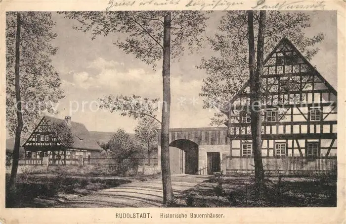 Rudolstadt Historische Bauernhaeuser Fachwerk Rudolstadt postalisch gelaufen 1916 Feldpost Erhaltung siehe scans [FriedD77] Feldpost Frierer