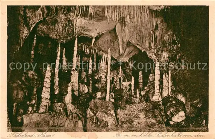 Ruebeland_Harz Baumannshoehle Saeulenhalle Tropfsteinhoehle Kupfertiefdruck Ruebeland_Harz postalisch nicht gelaufen 1921-1965 Erhaltung siehe scans [FriedD77] Frierer