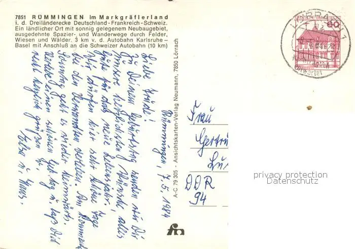 Ruemmingen Panorama Markgraeflerland Ortsmotive Kirche Ruemmingen postalisch gelaufen 1984 Erhaltung siehe scans [FriedD77] Frierer