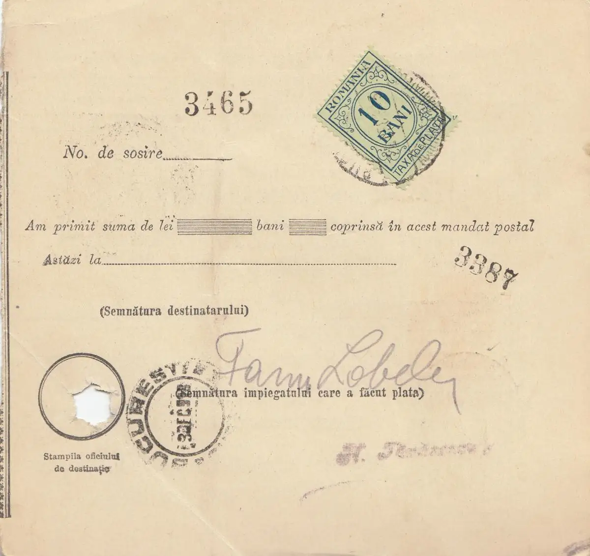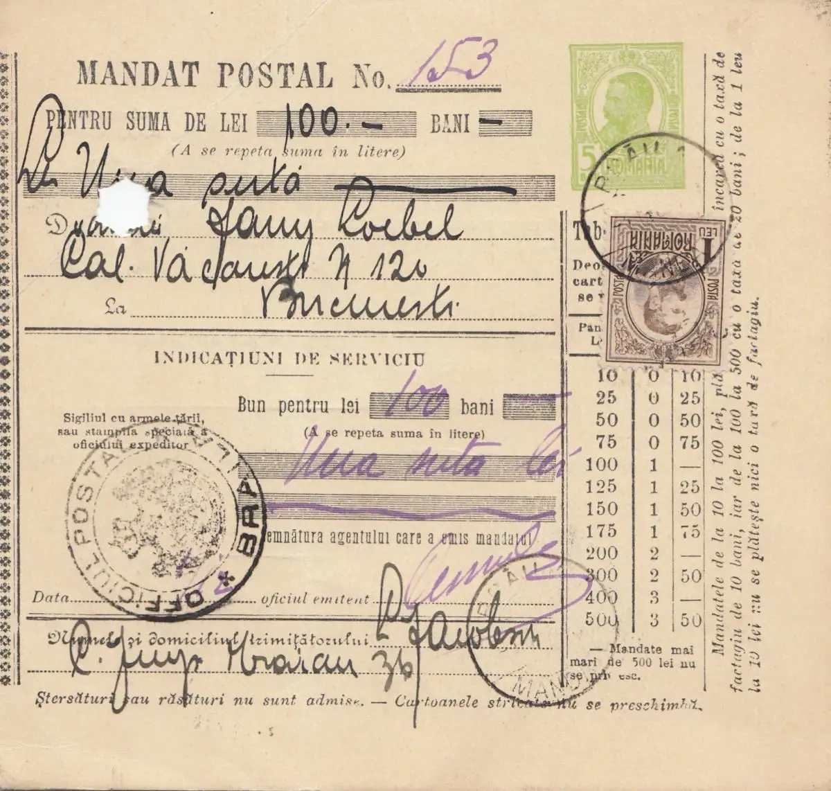 Roumanie: Mandat du Postal Braila à Bucarest en 1908