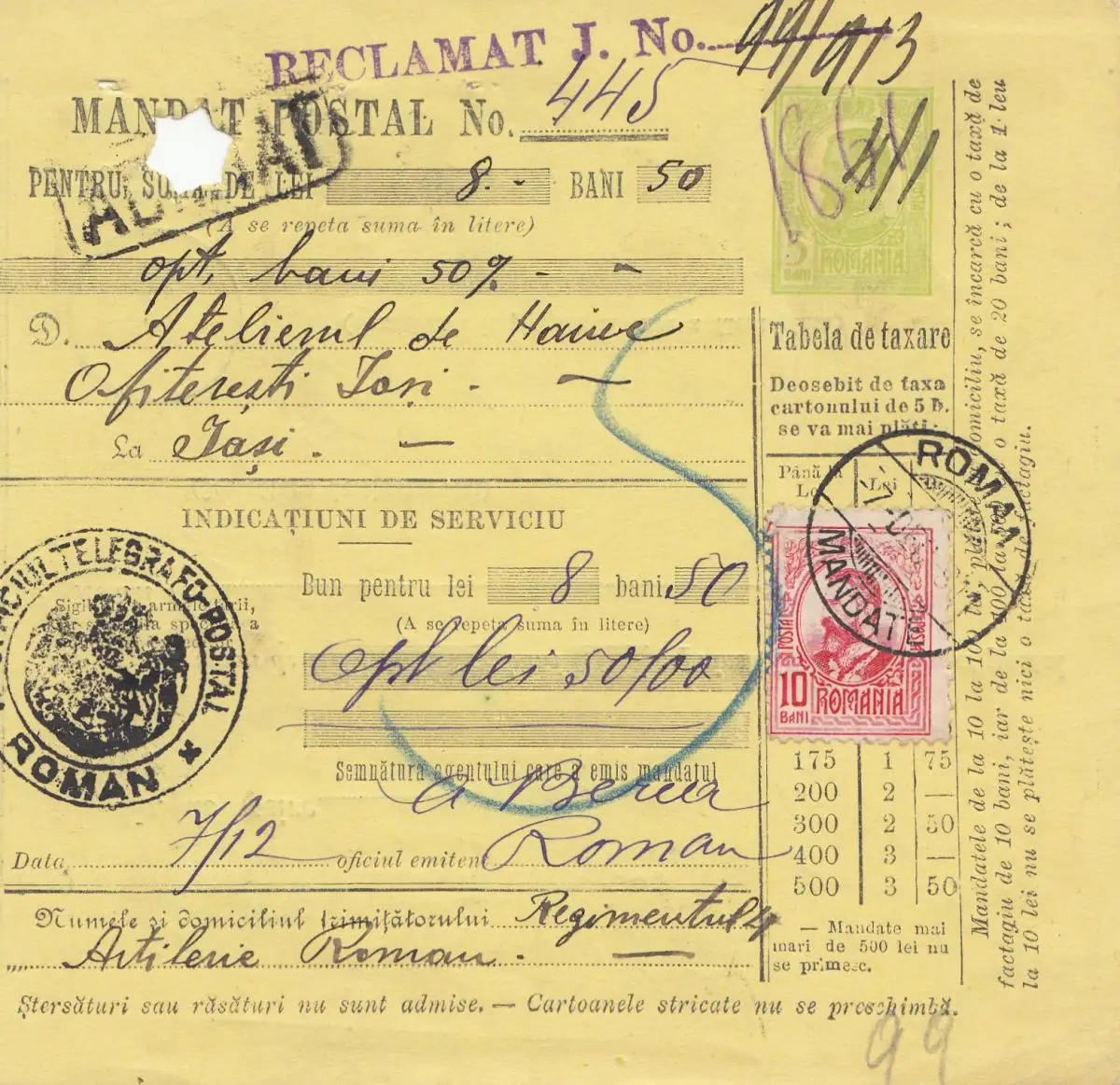 Roumanie: 1911: Mandat du Postal Roman après Jasi, Reclamat