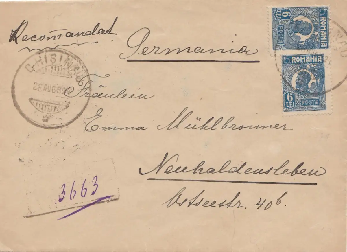 Roumanie: 1924: Lettre à Neuhaldensleben