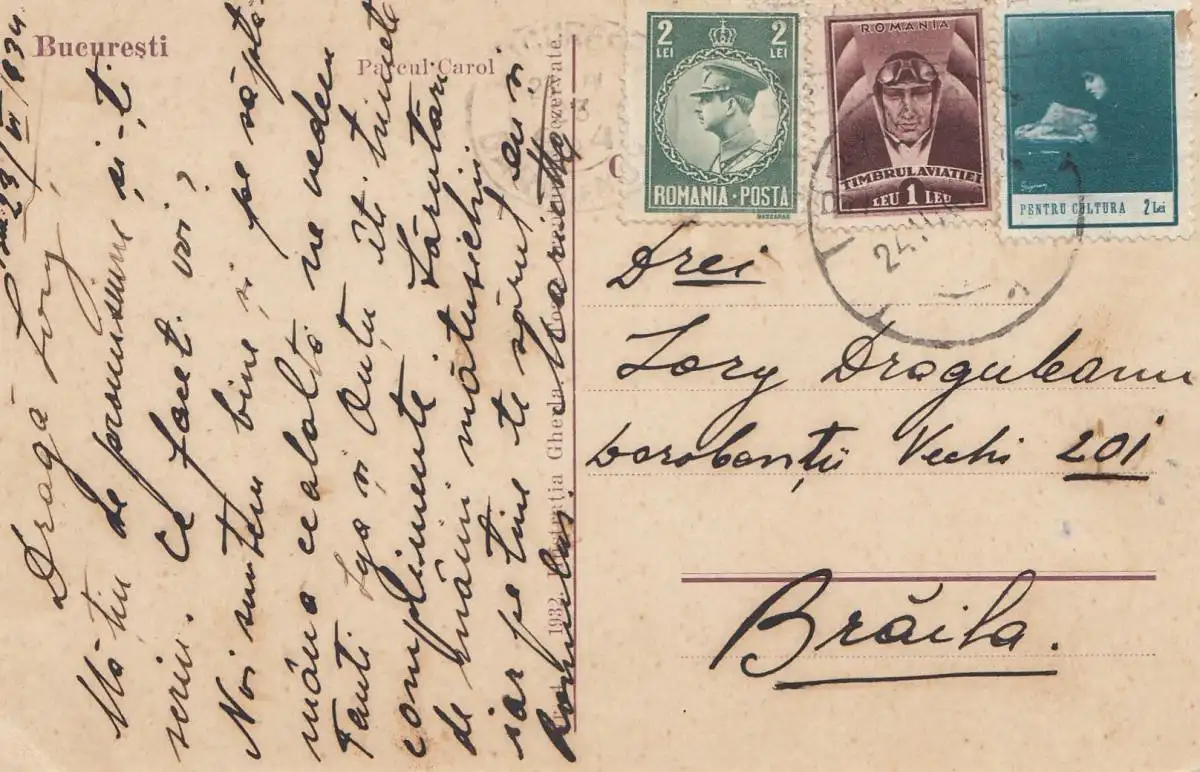 Roumanie: 1934: Carte de vision Bucuresti
