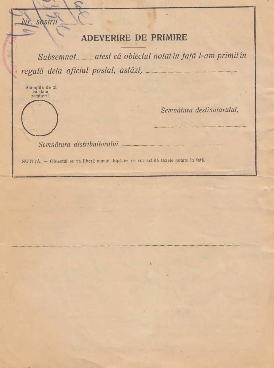 Roumanie: 1938: Aviz de Sosire