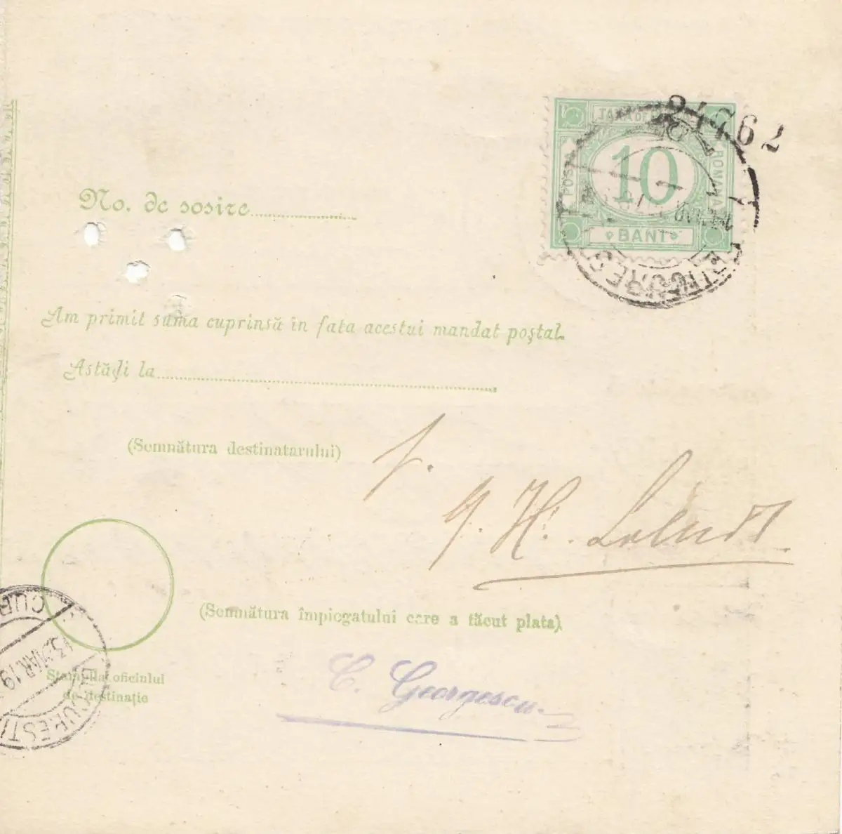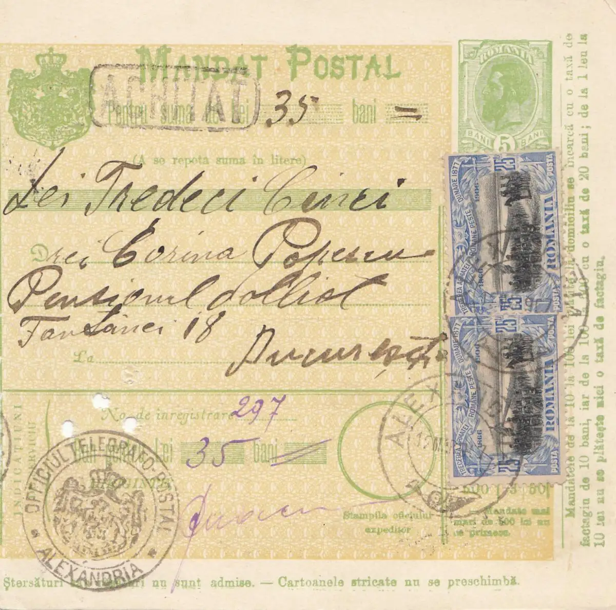 Roumanie: Mandat Postal Alexandria après Bucaresti 12.03.1907