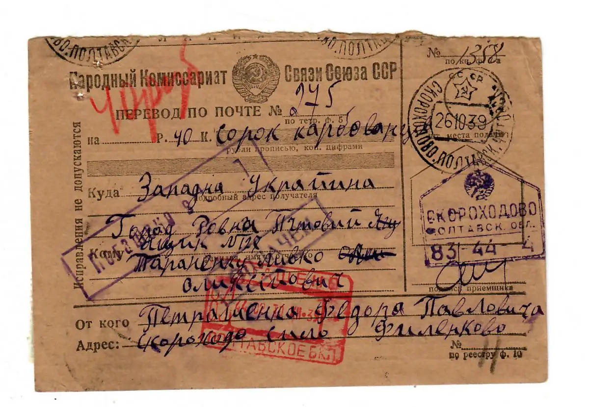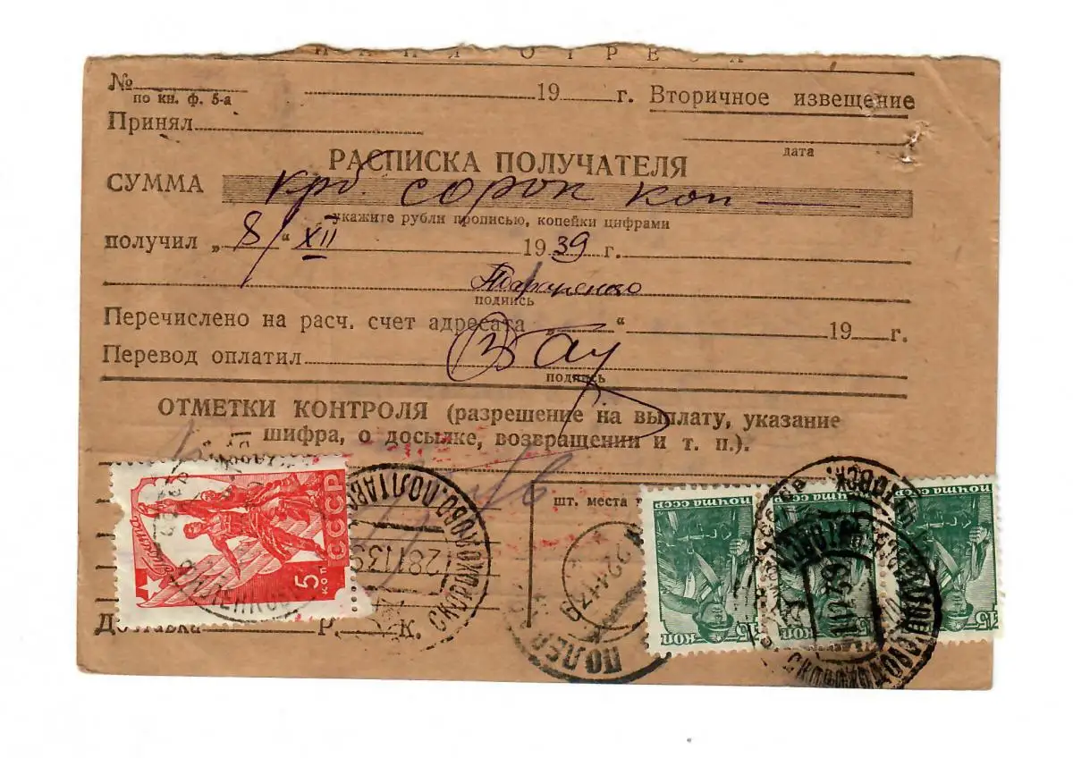 Rus: 1939 Carte de paquets