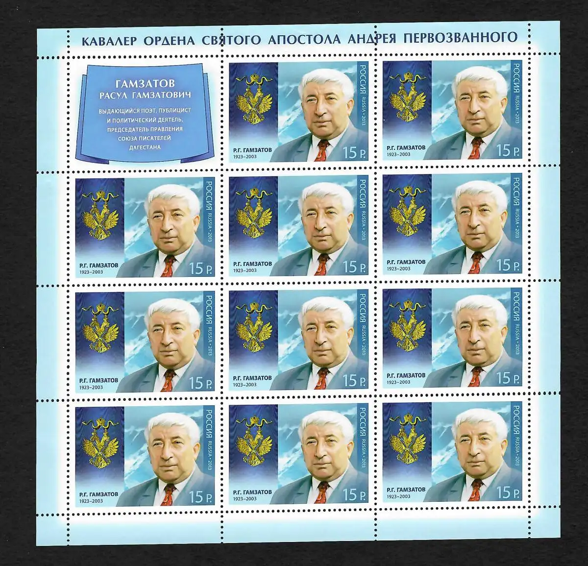 Russie: 10e anniversaire de la mort de Rassoul G. Gamsatov, arc de 11 marques post-fraîchissement