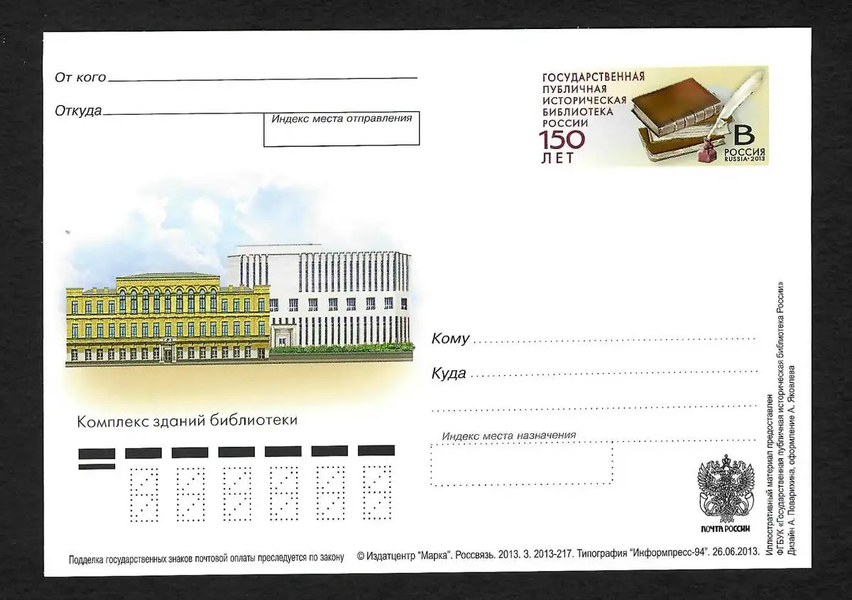 Russie: 150 ans de bibliothèque d'État russe, entier frais de port