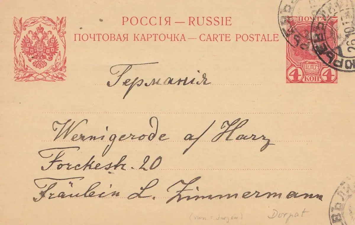 Russie: 1913 Dorpat/Estonie après Werningerode