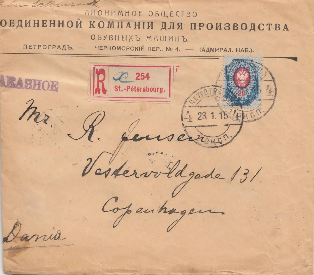 Russie: 1915 Inscription St. Petersbourg à Copenhague
