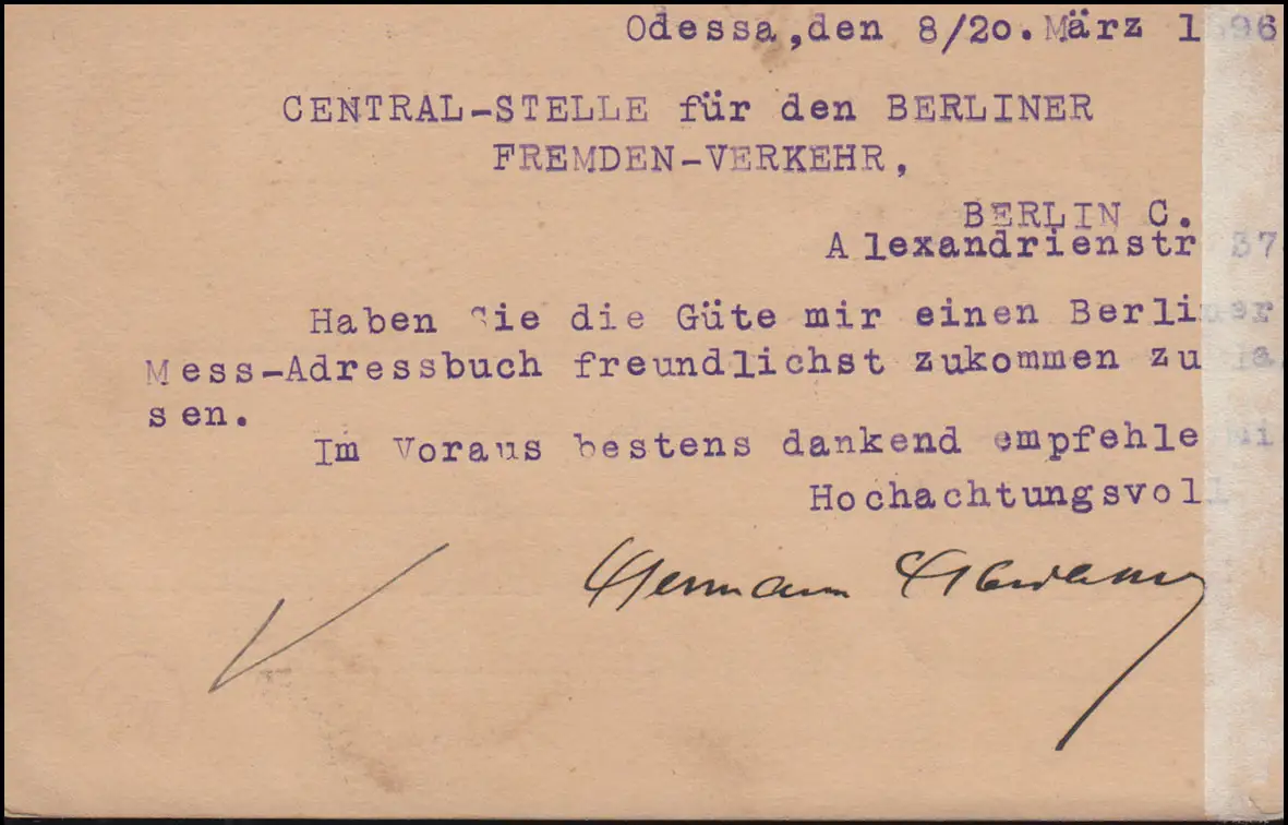 comme carte postale étrangère selon BERLIN SW 13 - 22.3.96 et "commandée par le bureau de poste 13- 23.3. 96" Numéro de catalogue: P11 Examen: original Référence produit: 00000000031586>Note: Cet article n'est disponible qu'une seule fois. Vous recevrez exactement l'article représenté.