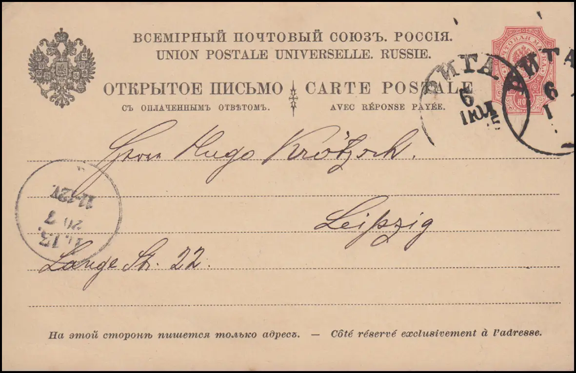Russie Carte postale P 14 de RIGA 6.7.1895 vers LEIPZIG L 13 - 20.7.