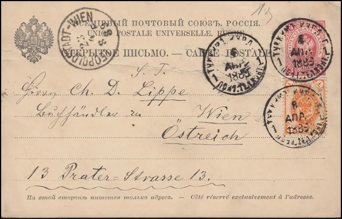 comme carte postale à l'étranger selon LEOPOLDSTADT-WIE 23.4.1889 Numéro de catalogue: P7 Examen: original Référence produit: 00000000031243>p>Remarque: Cet article n'est disponible qu'une seule fois. Vous recevrez exactement l ' article représenté.