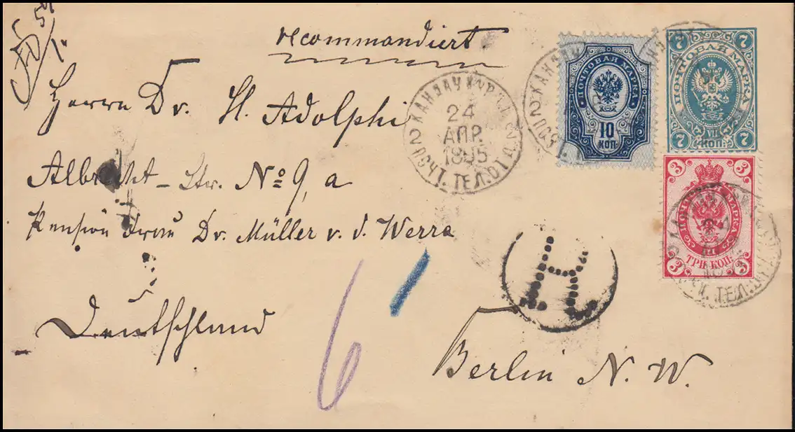 Russie R-Affaire générale U 33A avec supplément 31+41 le 24.4.1895 selon BERLIN 9.5.1895