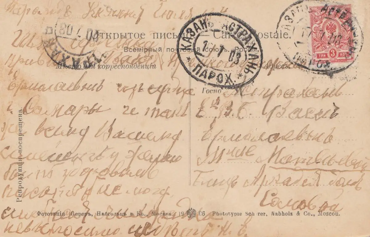Russie: 1908: Kazan-Astrakhan Steamship, carte de Samara