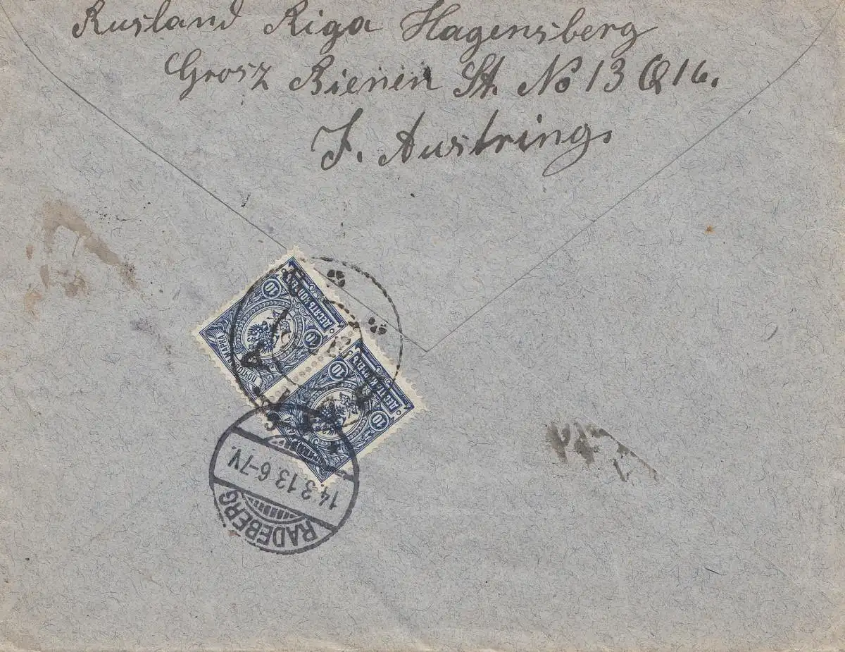 Russie: 1913: Lettre recommandé Riga à Radeberg