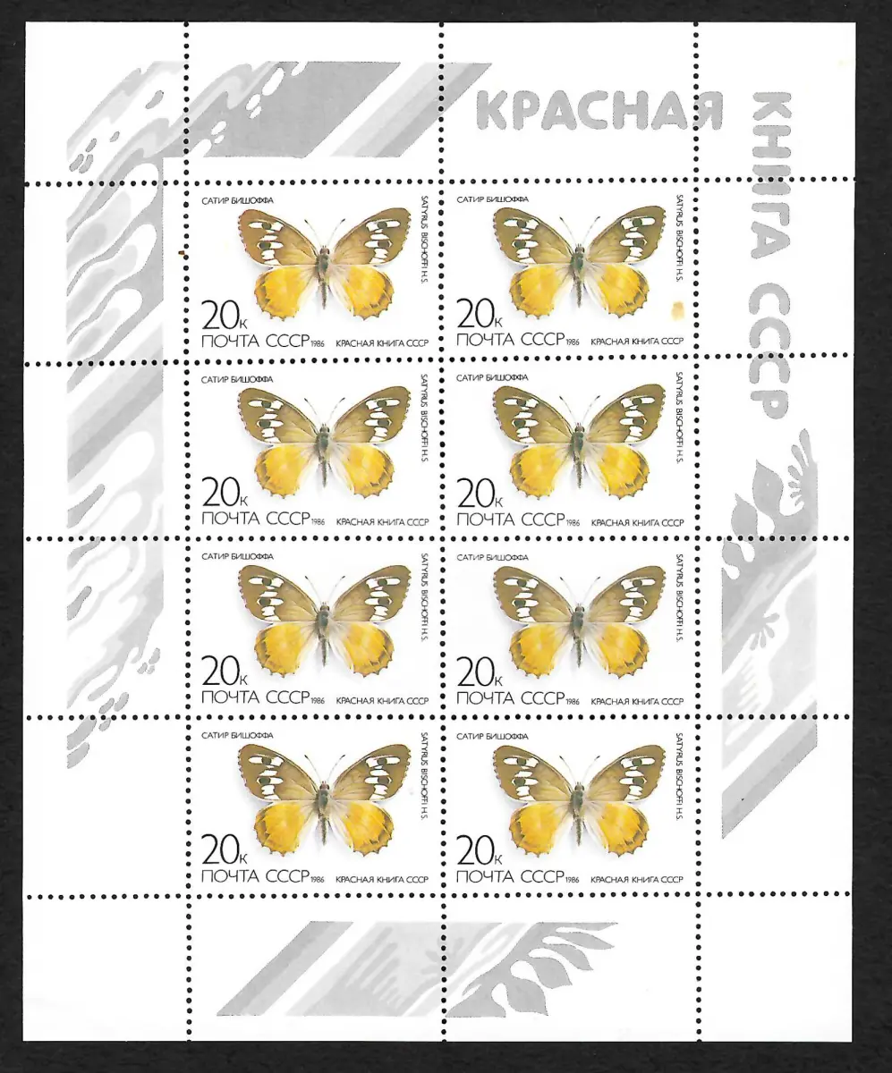 Russland 1986: Schmetterlinge, #5588, Bogen, postfrisch
