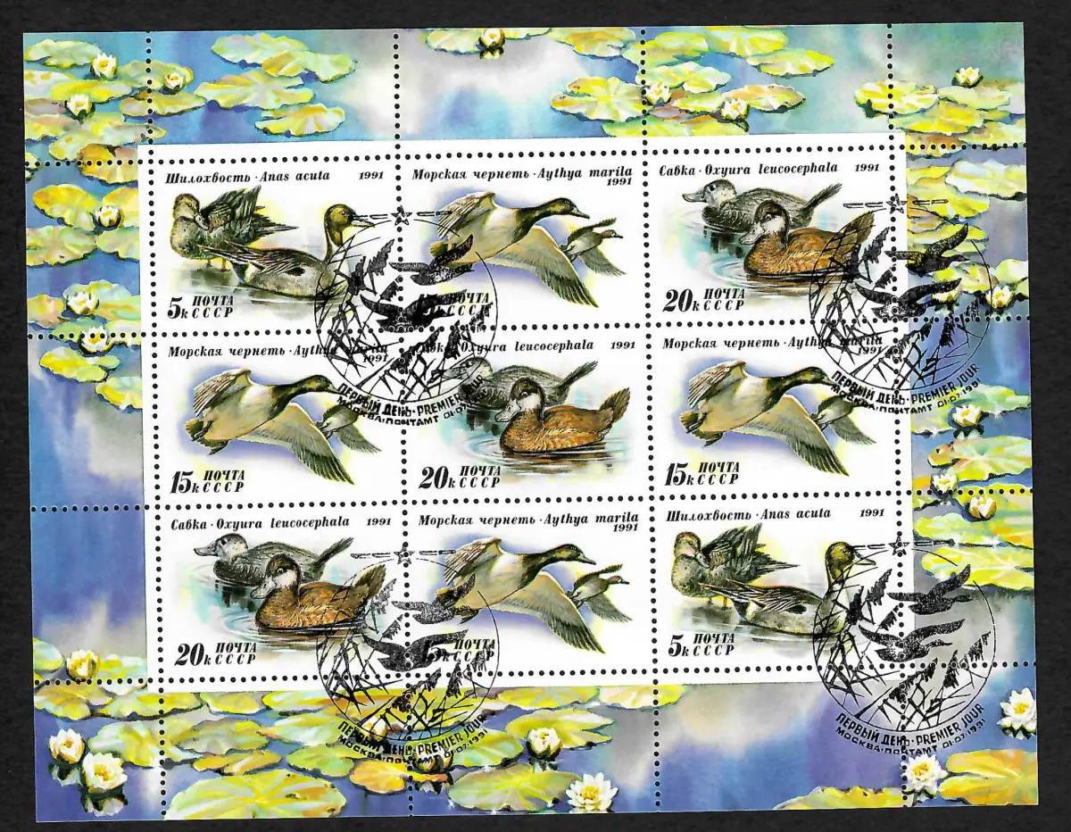 Russland 1991: Enten #6011a, Kleinbogen, gestempelt
