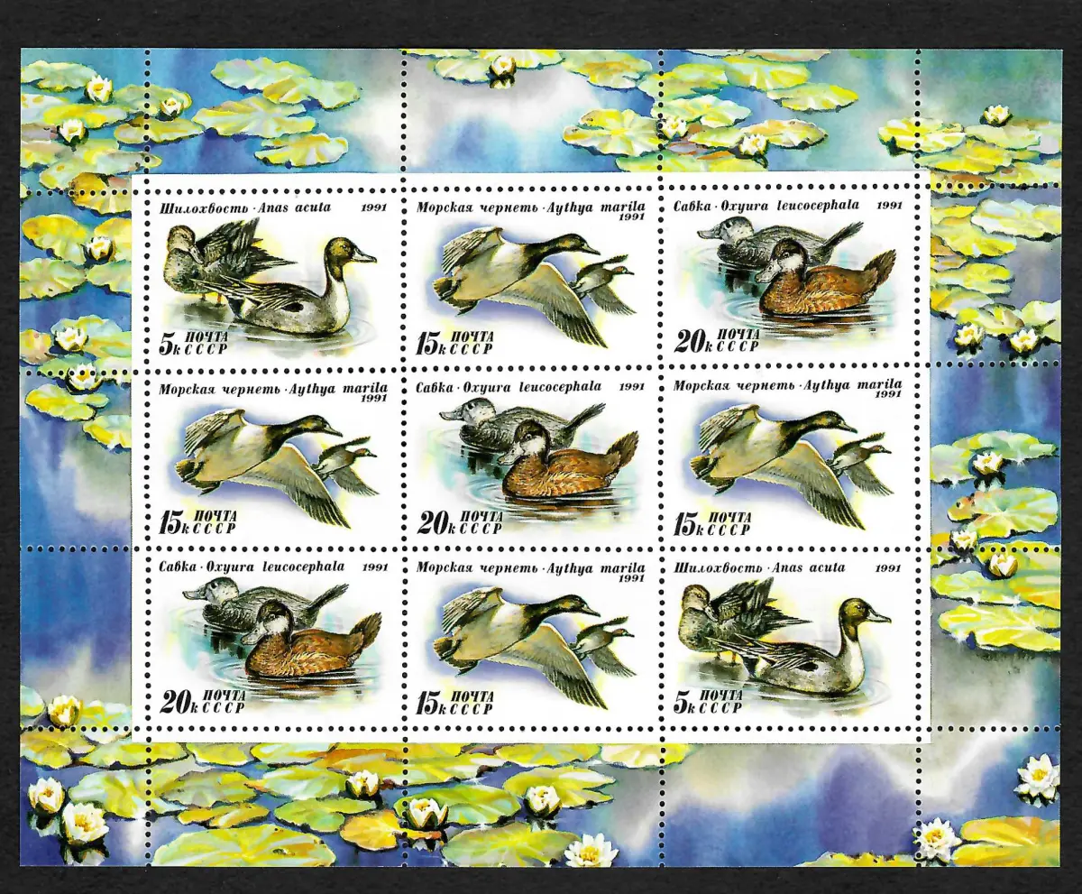 Russland 1991: Enten #6011a, Kleinbogen, postfrisch **