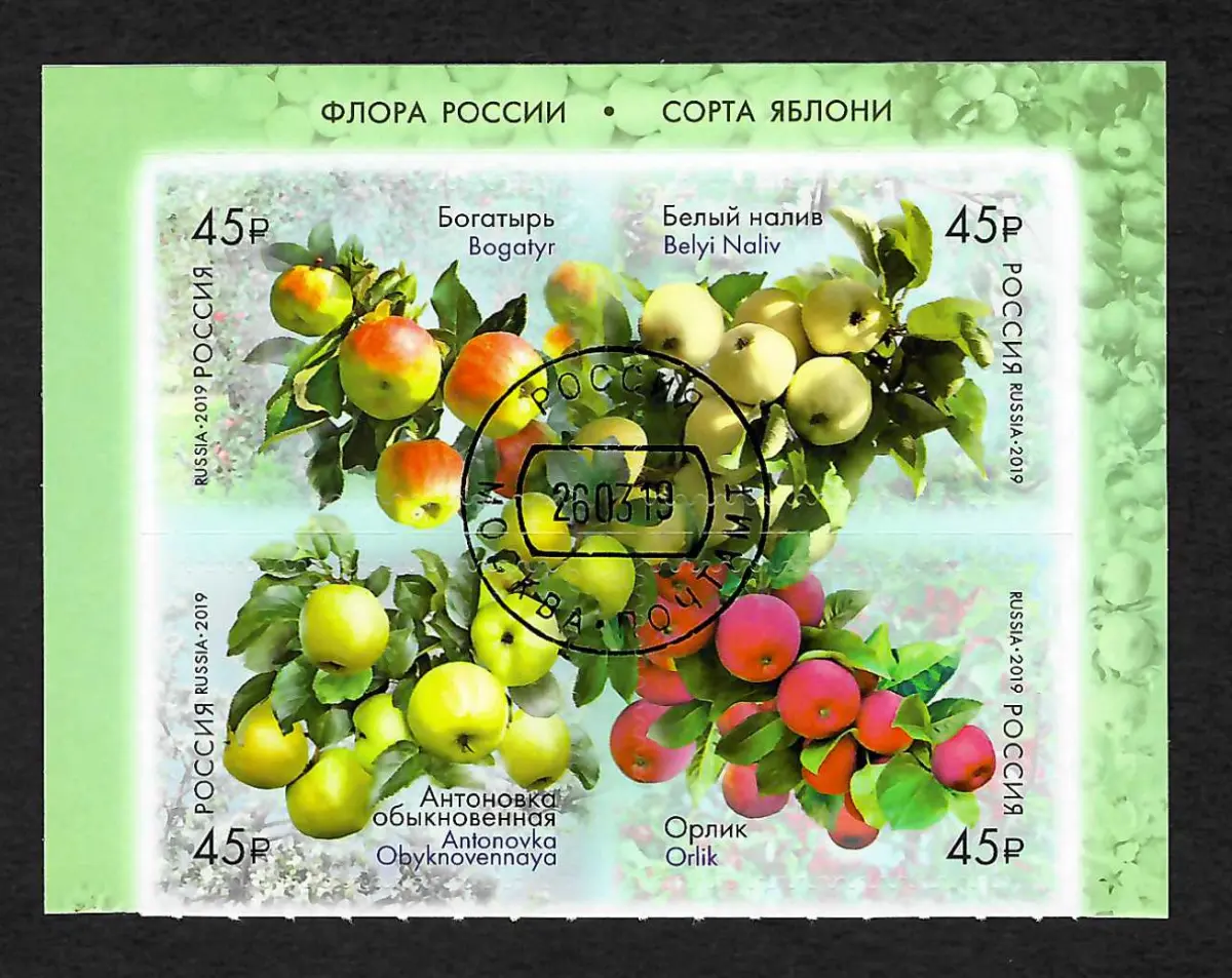 Russland 2019: Früchte - Äpfel, Apfelbäume, gestempelt