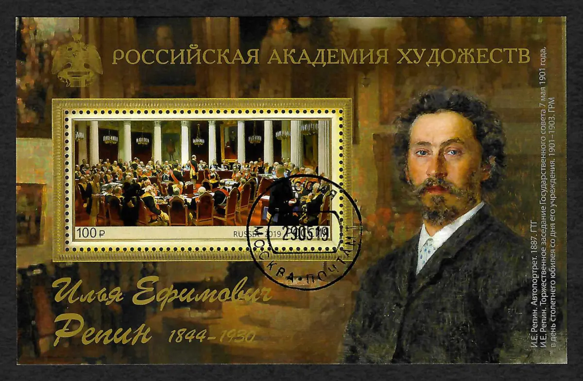 Russland 2019: Ilja Repin, Block, gestempelt