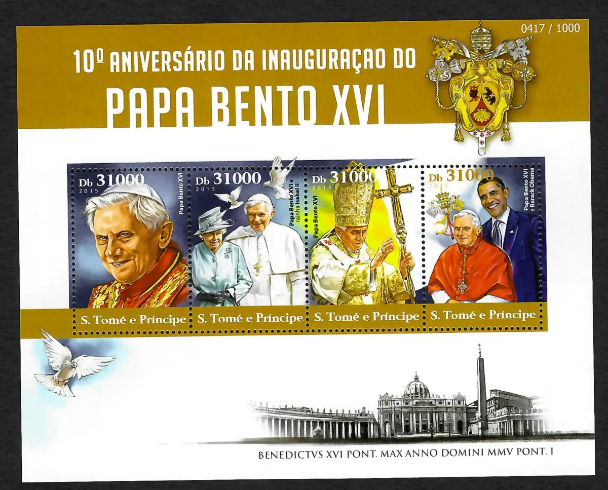 S. Tomé e Principe, Papa Beneto, Barack Obama 2015, postfrisch