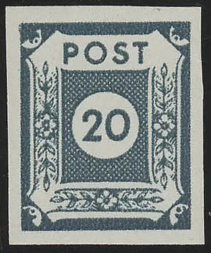 SBZ 48Aa chiffre 20 Pf, bleu foncé prussien, coupe, ** testé