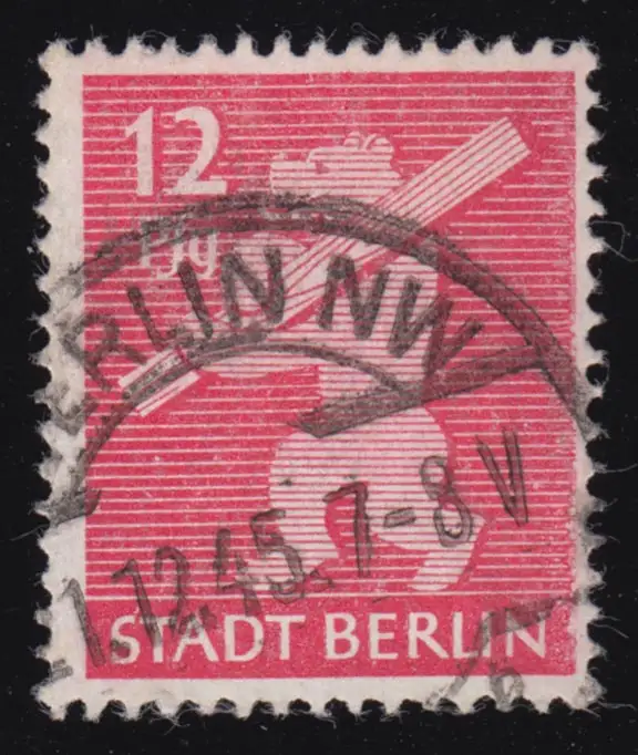 SBZ 5 AA ux Bär 12 Pf, rouge, O Tamponné
