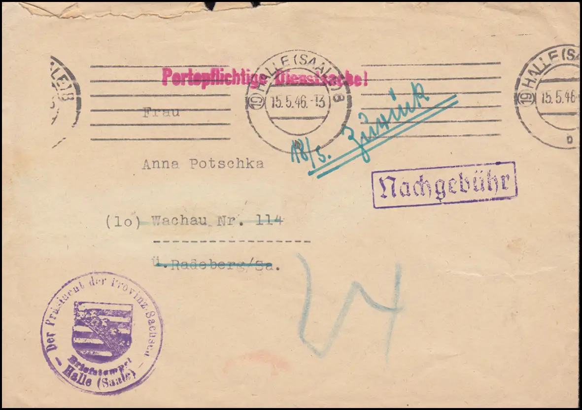 Timbre Le Président de la Province de Saxe - Halle / Saale, Lettre à Wachtau et retour, Temple de supplément examen: original Référence produit: 00000000031346>Note: Cet article n'est disponible qu'une seule fois. Vous recevrez exactement l'article représenté.