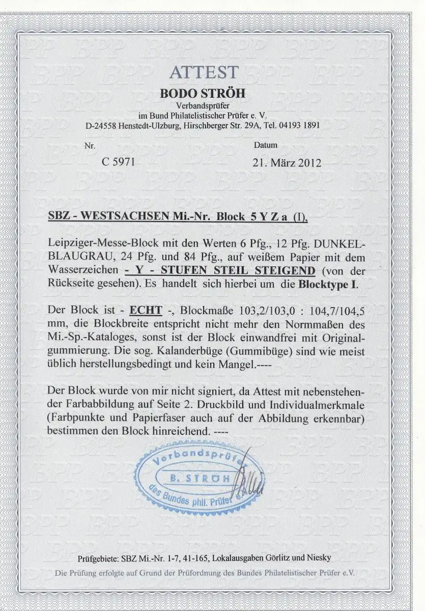 SBZ: bloc 5 Y Za, **, BPP Attest