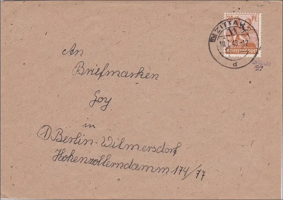 SBZ: Lettre de Zittau à Berlin-Wilmersdorf 1949 - Tampon à main