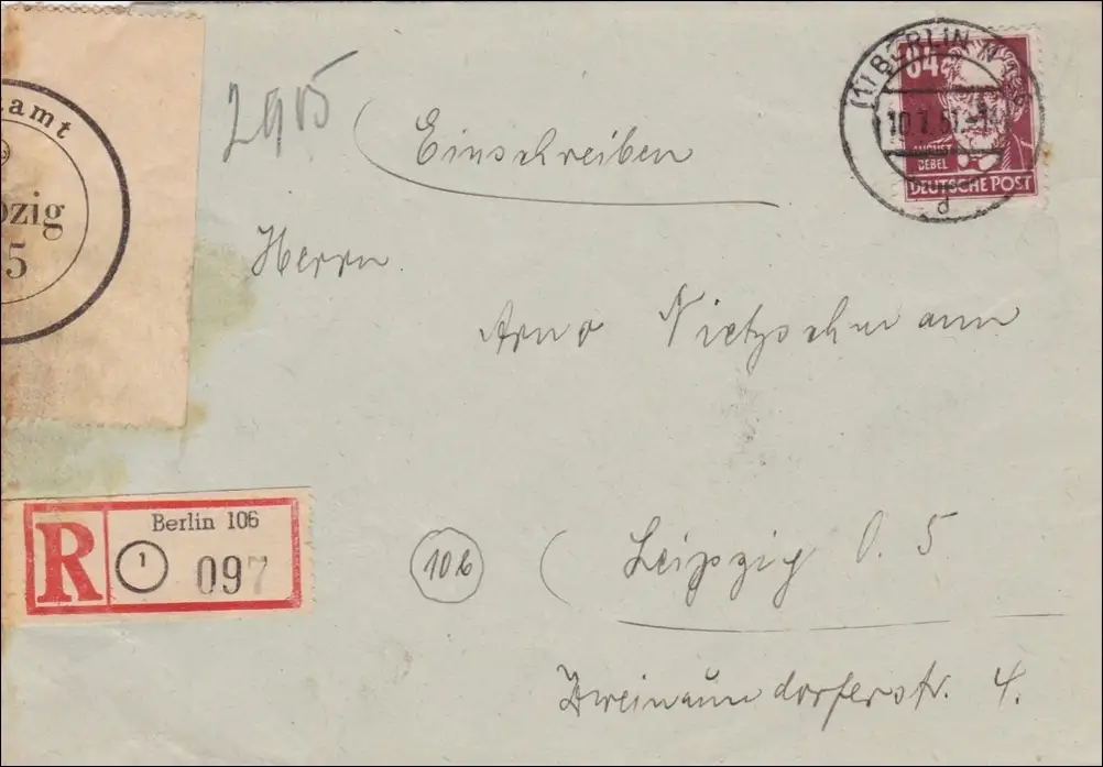 SBZ: Lettre recommandé de Berlin à Leipzig - Endommagé