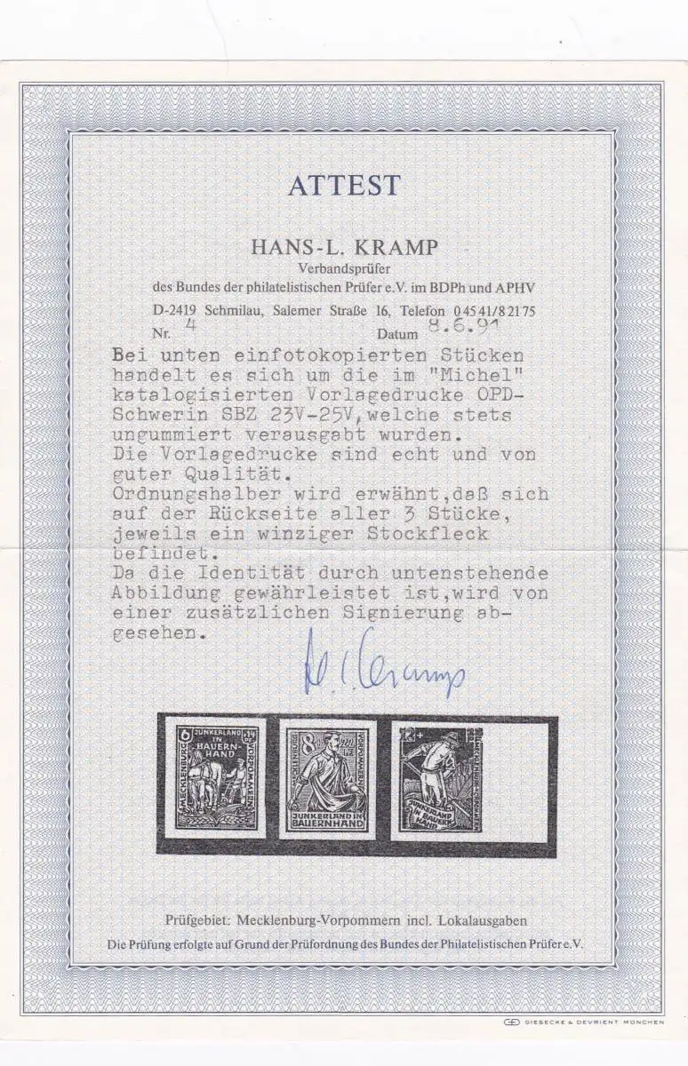 SBZ: Mecklembourg-Poméranie occidentale: MiNr. 23V/25V, Attest