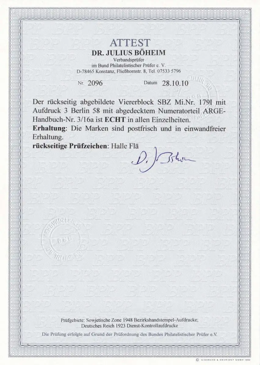 SBZ Min. 179 I, impression, frais, BPP Battest