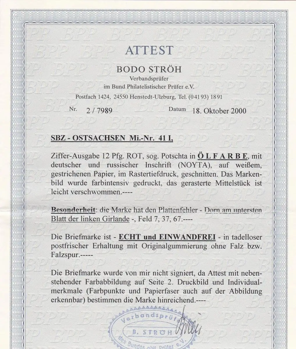 SBZ: Min. 41 I, Est de la Saxe, post-freeich, BPP Attest