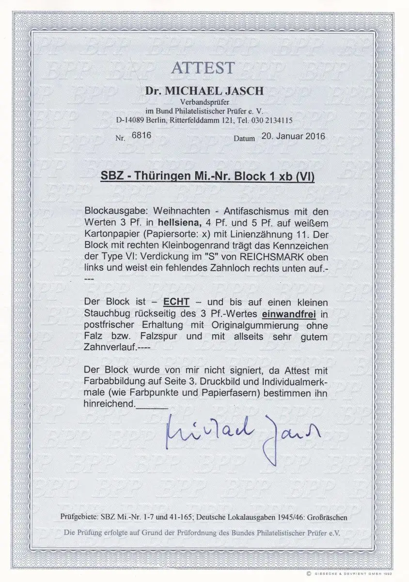 SBZ: N° de micro-bloc 1xb (VI), **, test de photo-catest BPP, frais de port