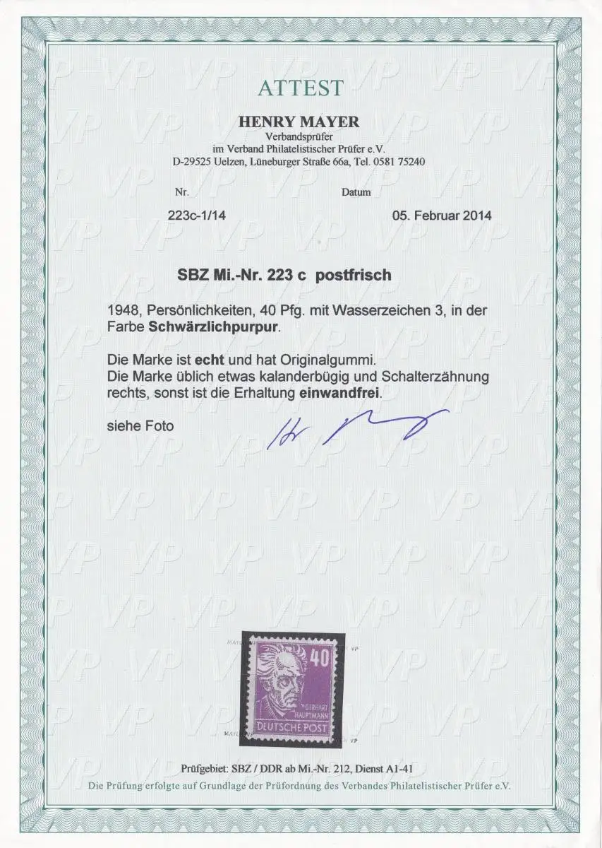 Voir scan. Numéro de l'article: Bes-H8576 Vérification: VPP-Verfahrenzichte Number: 00000000008579