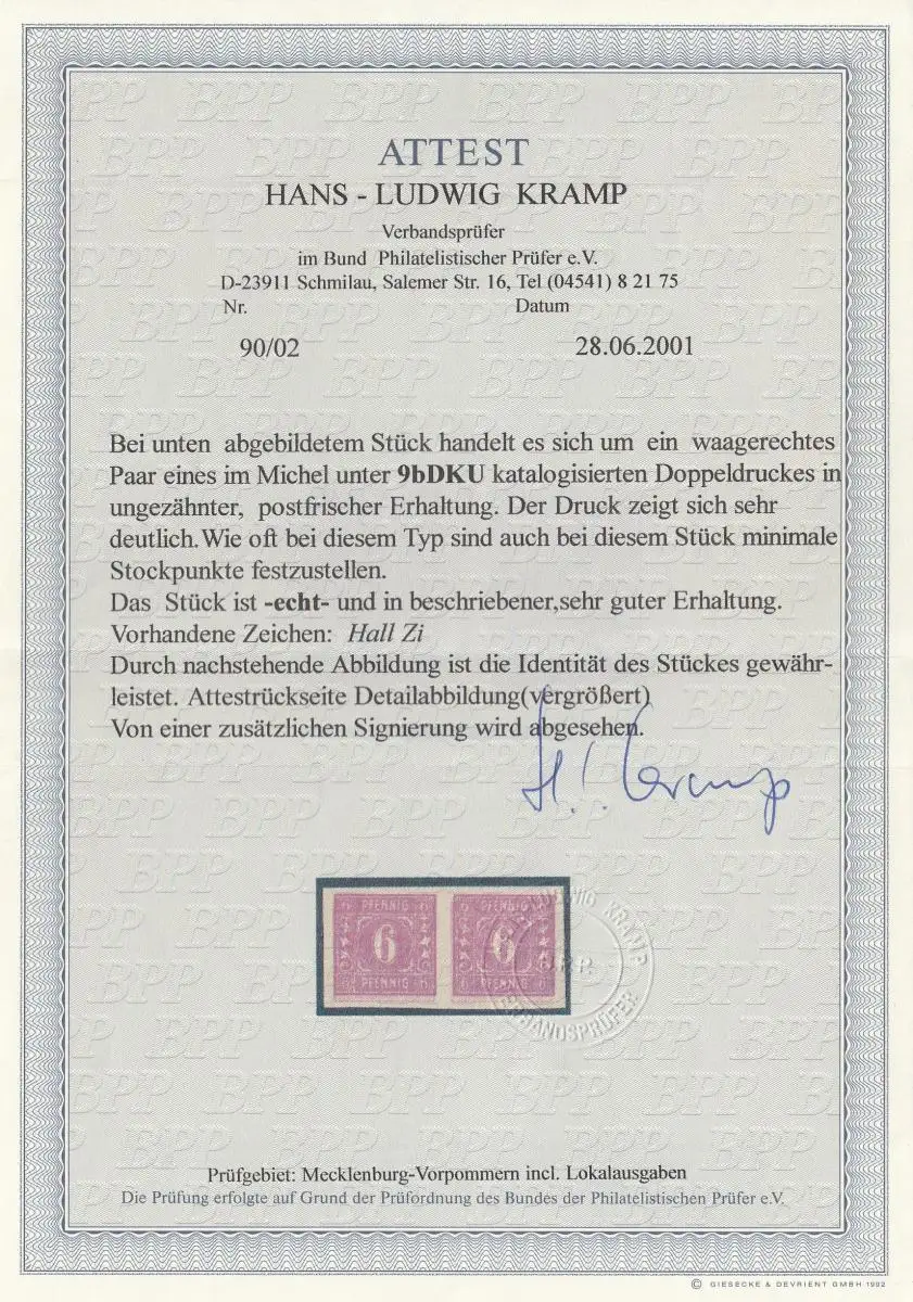SBZ: Min. 9b DKU, **, couple horizontal avec BPP Attest