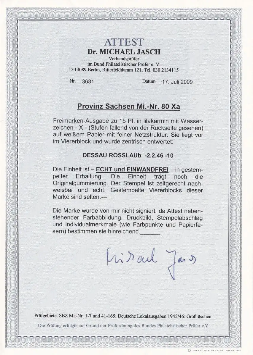 SBZ: Saxe, Min. 80 Xa, cacheté, BPP Foto Attest