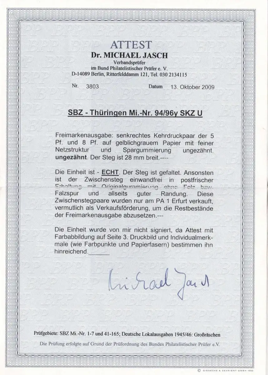 SBZ: Thuringe: MiNr. 94/96y SKZ U, post-freich, BPP Attest