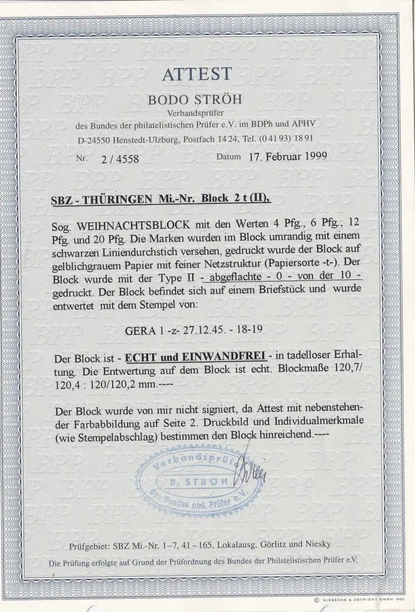 SBZ Thuringen Min. Block 2 t (II), cacheté
