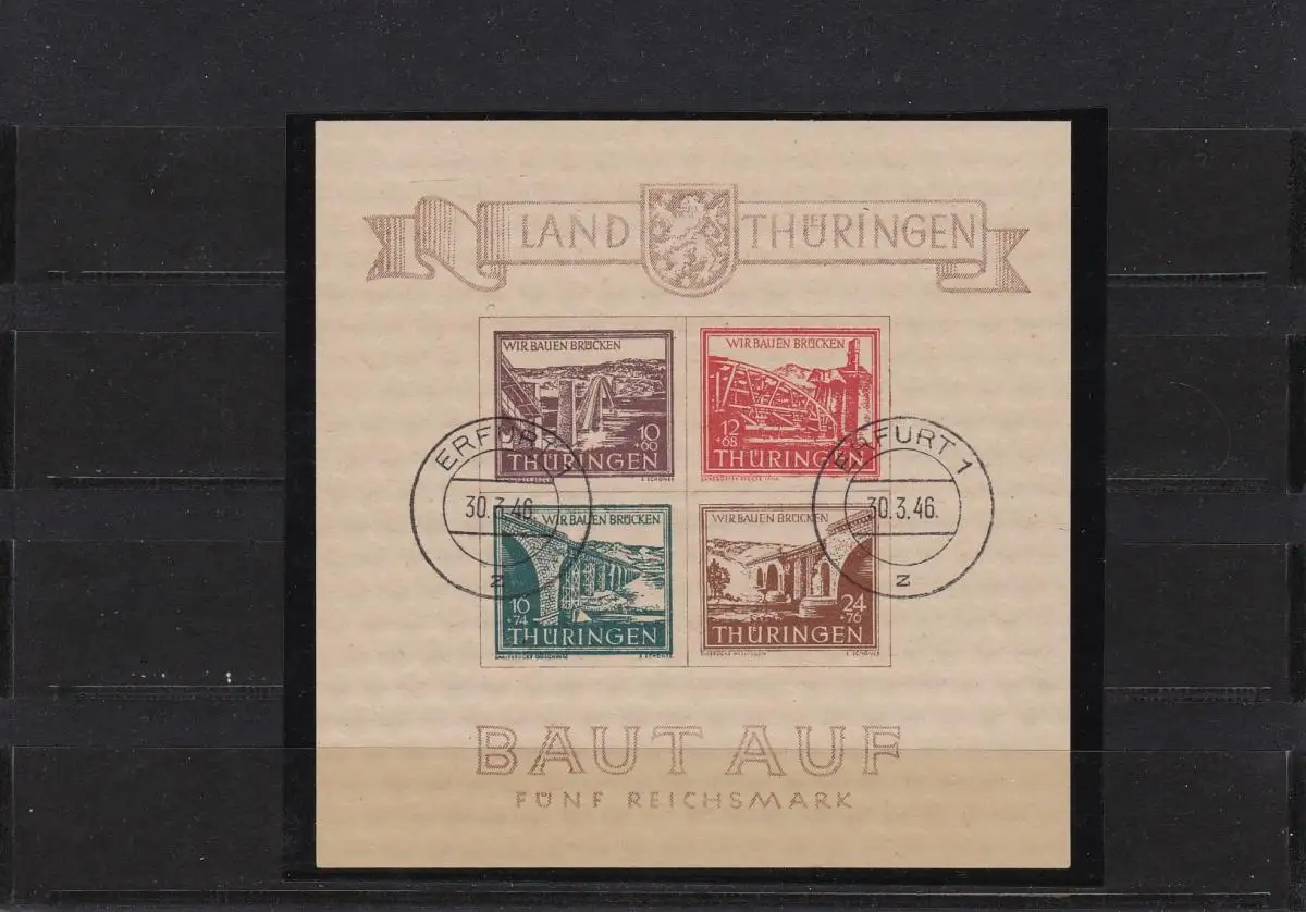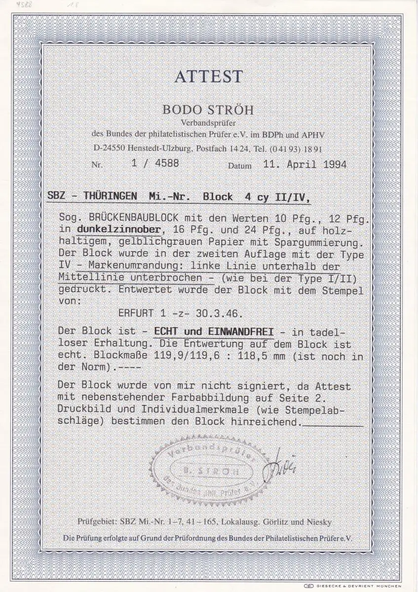 SBZ Thuringe: MiNr. Block 4 cy II/IV, cacheté Erfurt, BPP Attest