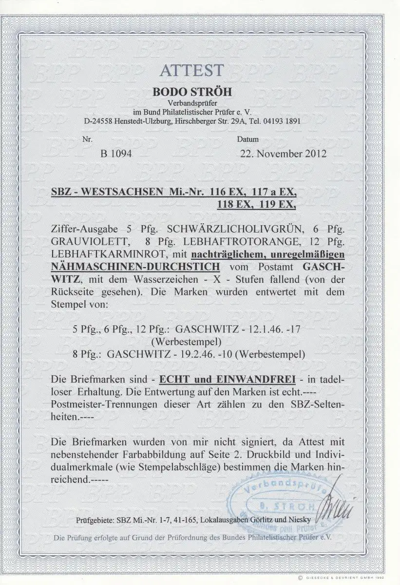 SBZ Saxe-Ouest N° 116 EX, 117 a EX 118 EX 119 EX Tamponné, BPP Battest