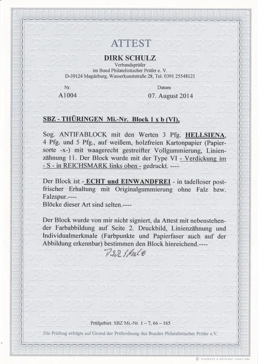 SBZ: bloc 1xb (VI), **, post-fraîchissement, BPP Attest