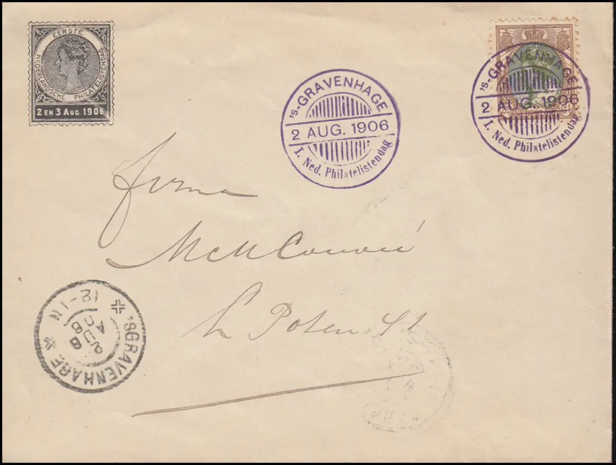 SSt 1. Journée des philatélistes néerlandaises Lettre de bijoux à ̄s-GRAVENHAGE 2.8.1906