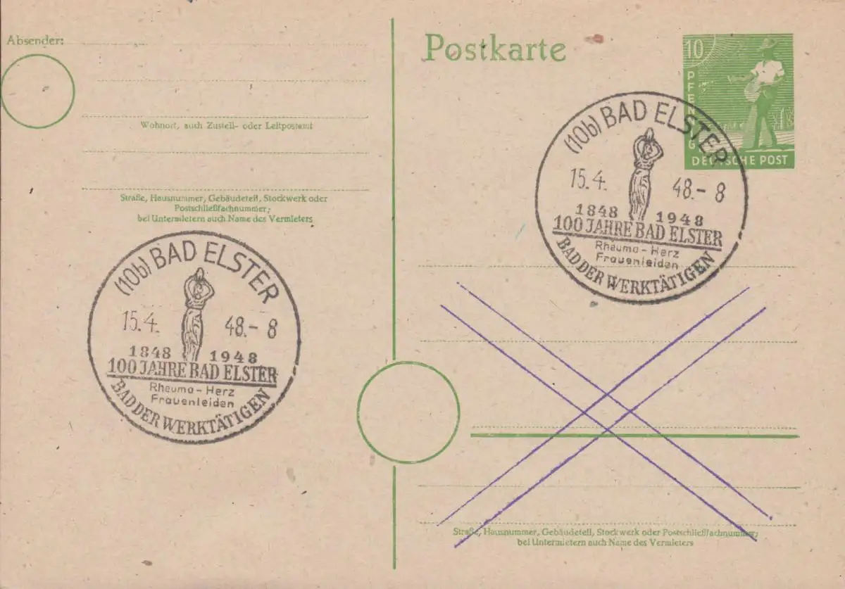 SSt BAD ELSTER 100 ans Bad Elster 15.4.1948 sur carte postale P 961