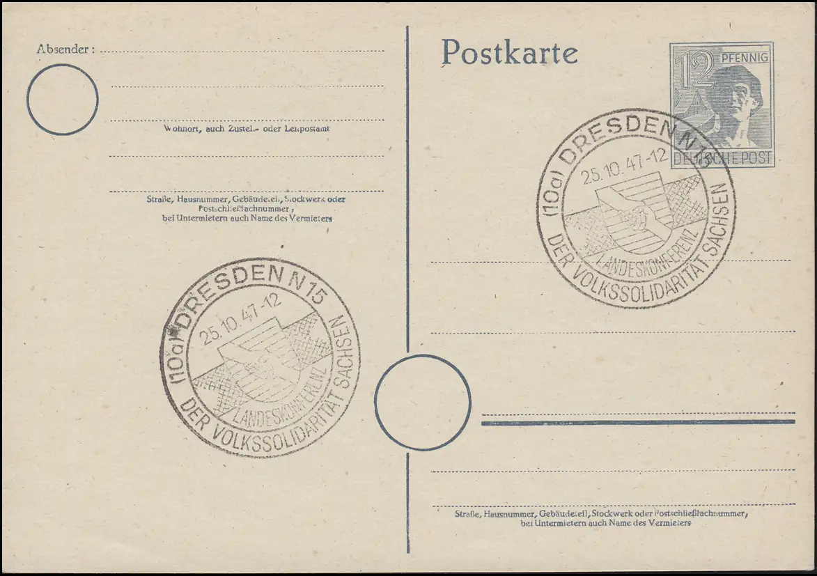 SSt DRESDE - Conférence nationale sur la solidarité populaire Saxe 25.10.1947 à P 962